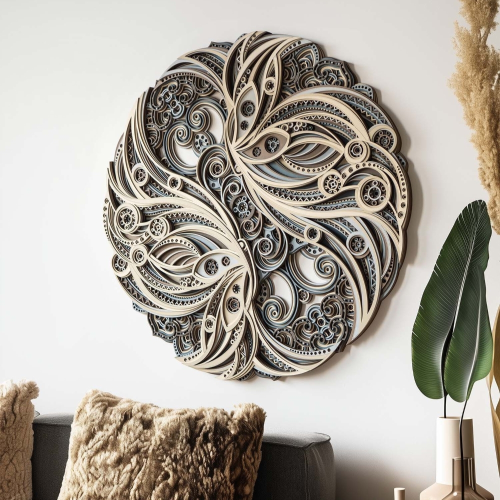 Handcrafted from high-quality basswood plywood, “Blissful Wings” features intricate details and a harmonious blend of colors that are both soothing and visually stimulating. Perfect for those who value cultural heritage and fine art, this piece not only enhances your space but also serves as a daily reminder of the beauty and joy found in unity and love.
