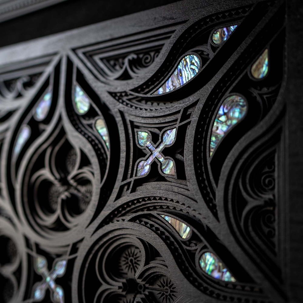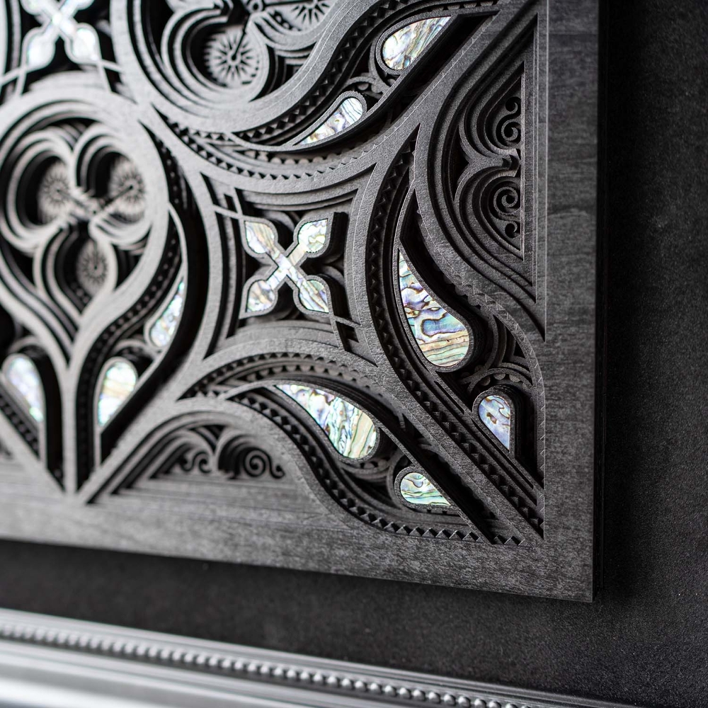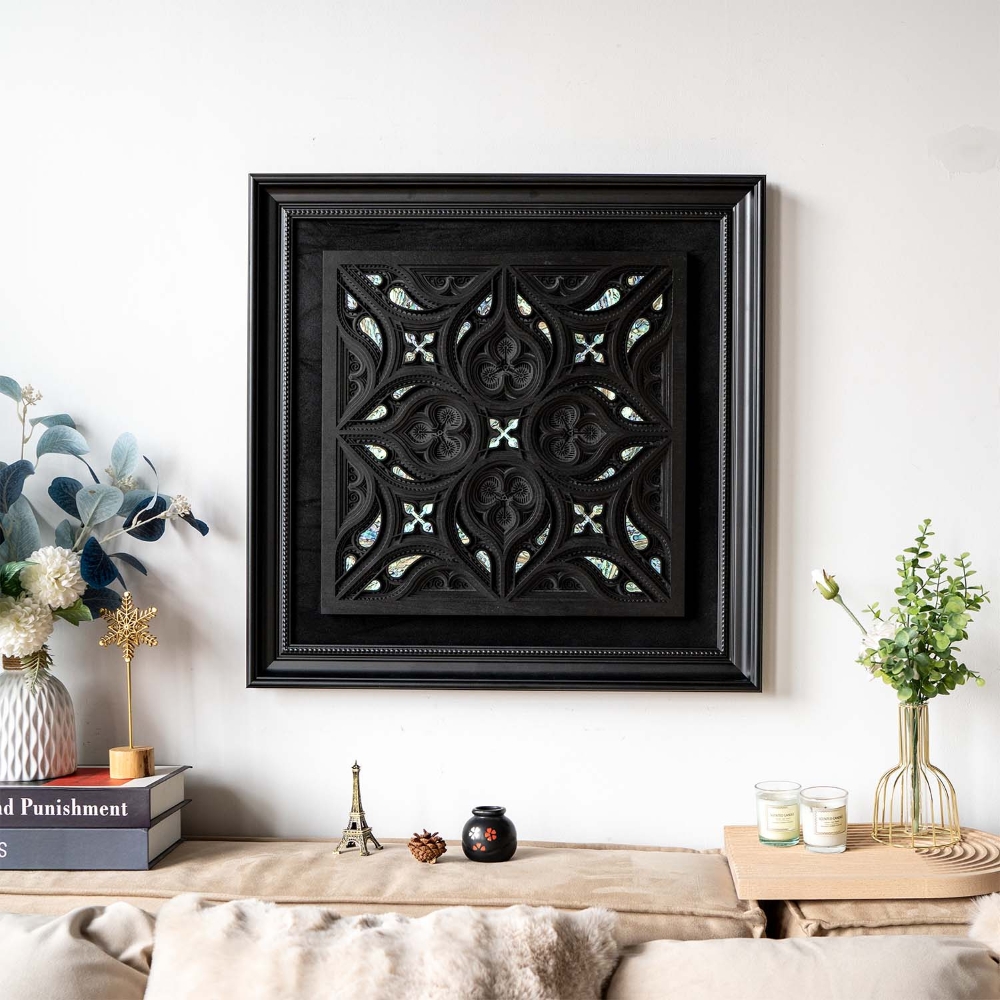 Our classic "Rose" reimagined, presenting the stunning "Aurora Rose." This 3D wood wall art piece infuses its original romance and elegance with a deep black backdrop, highlighting the inlaid "iridescent white" shell. These shells shimmer with a spectrum of colors under light, reminiscent of the aurora borealis, injecting a modern and captivating vitality into the traditional rose design.