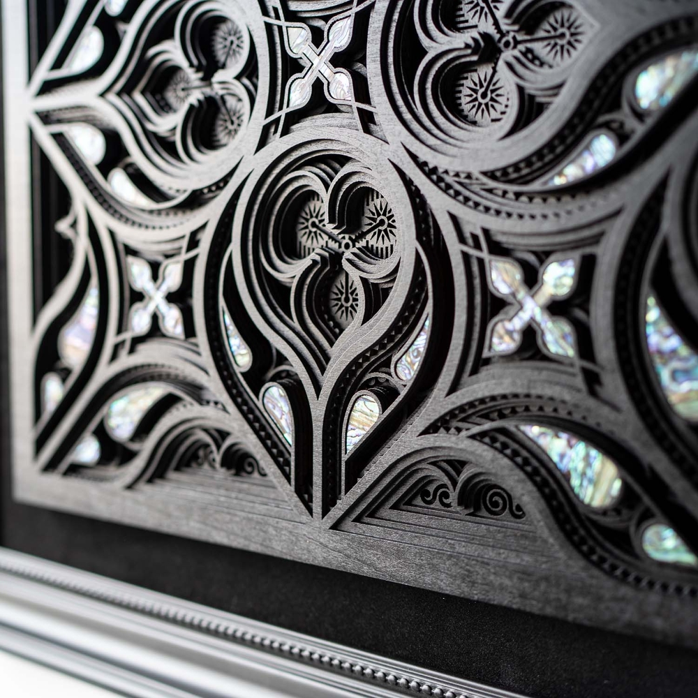 STEREOWOOD Aurora Rose Wall Art - Hand Carved Mother of Pearl in Black Frame, Geometric Home Decor, Wedding Anniversary Gift, Wall Sculpture