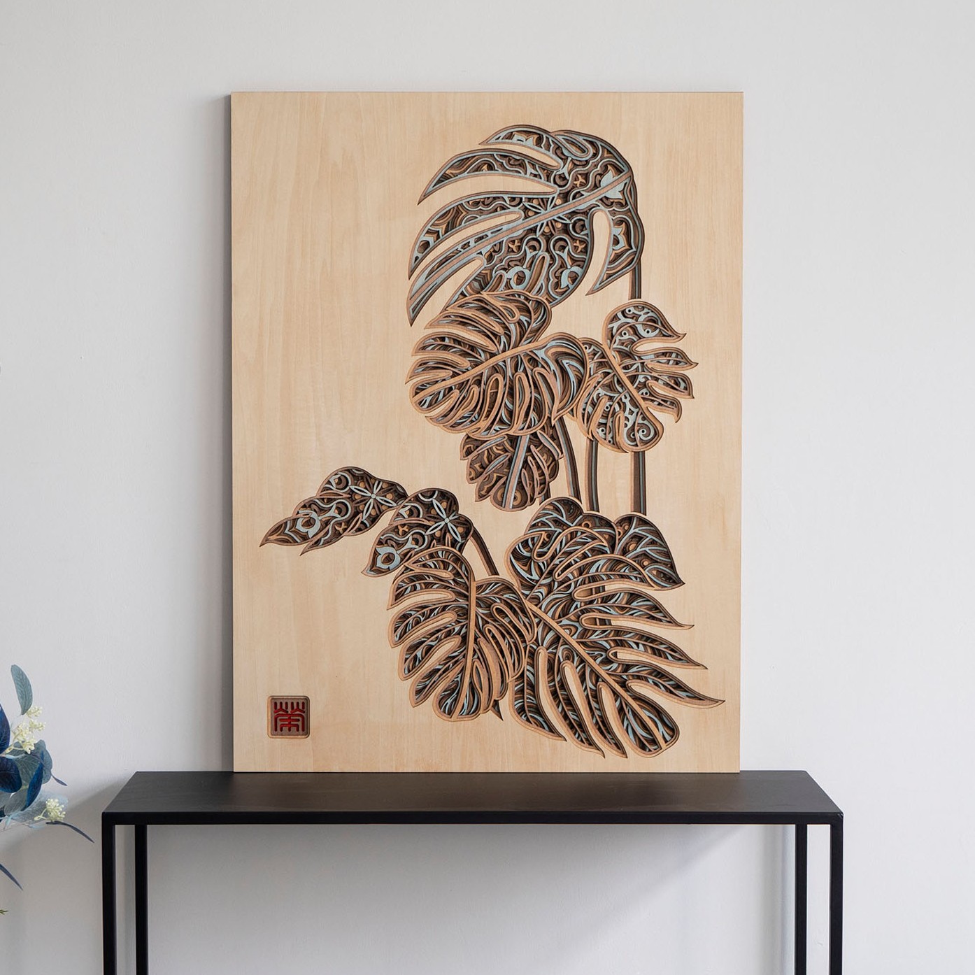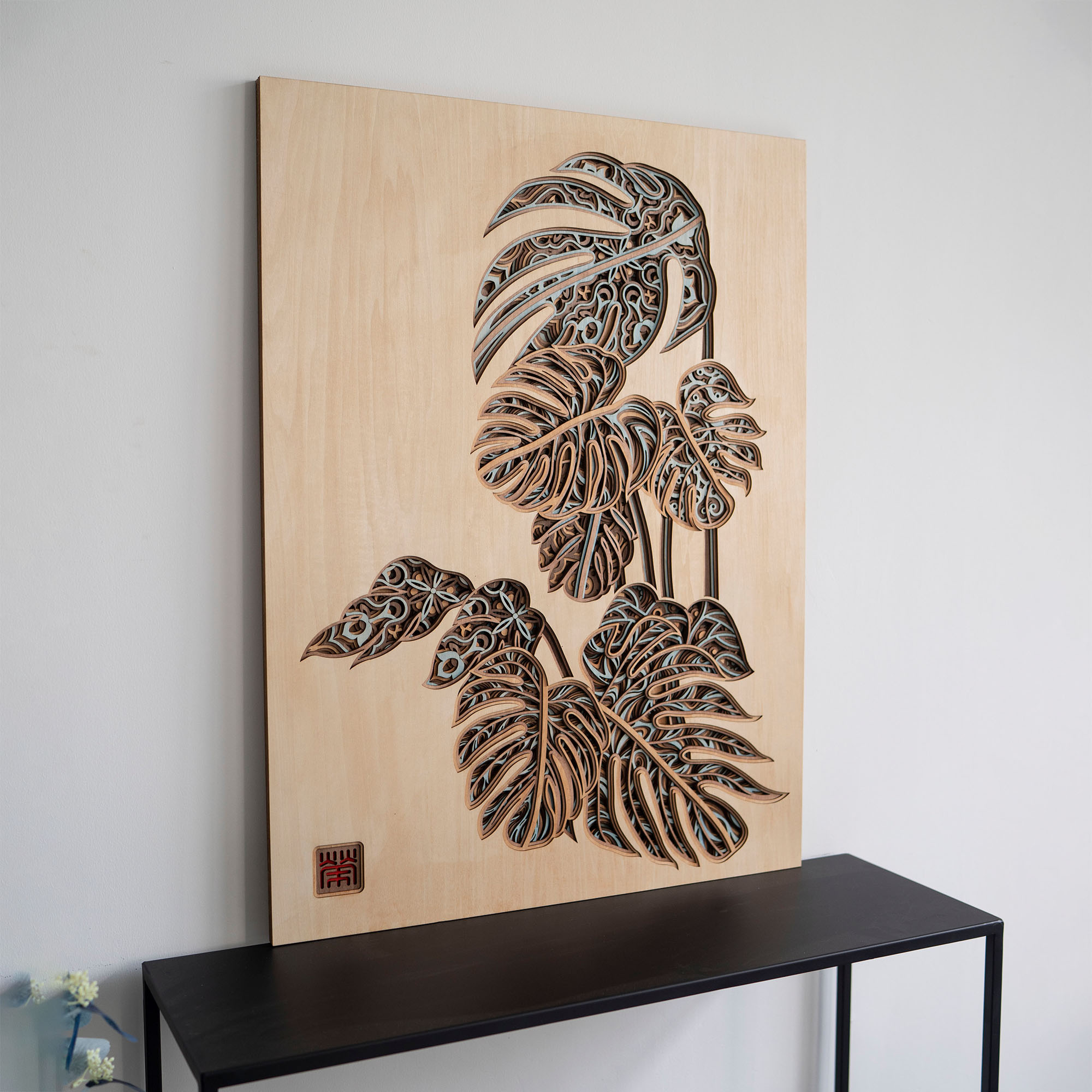 Handcrafted from durable basswood plywood, this art piece artfully combines natural beauty with cultural significance. The multilayered leaves create a captivating visual display that reflects the interplay of light and shadow, adding depth and dimension to your surroundings. Each detail has been thoughtfully designed to symbolize “great family and great business, thriving and flourishing,” making it an ideal addition to any home or office.